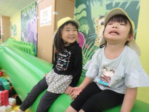 お友だちのみんなと広い遊技場で遊ぶのなんて、楽しすぎる!!と大騒ぎ