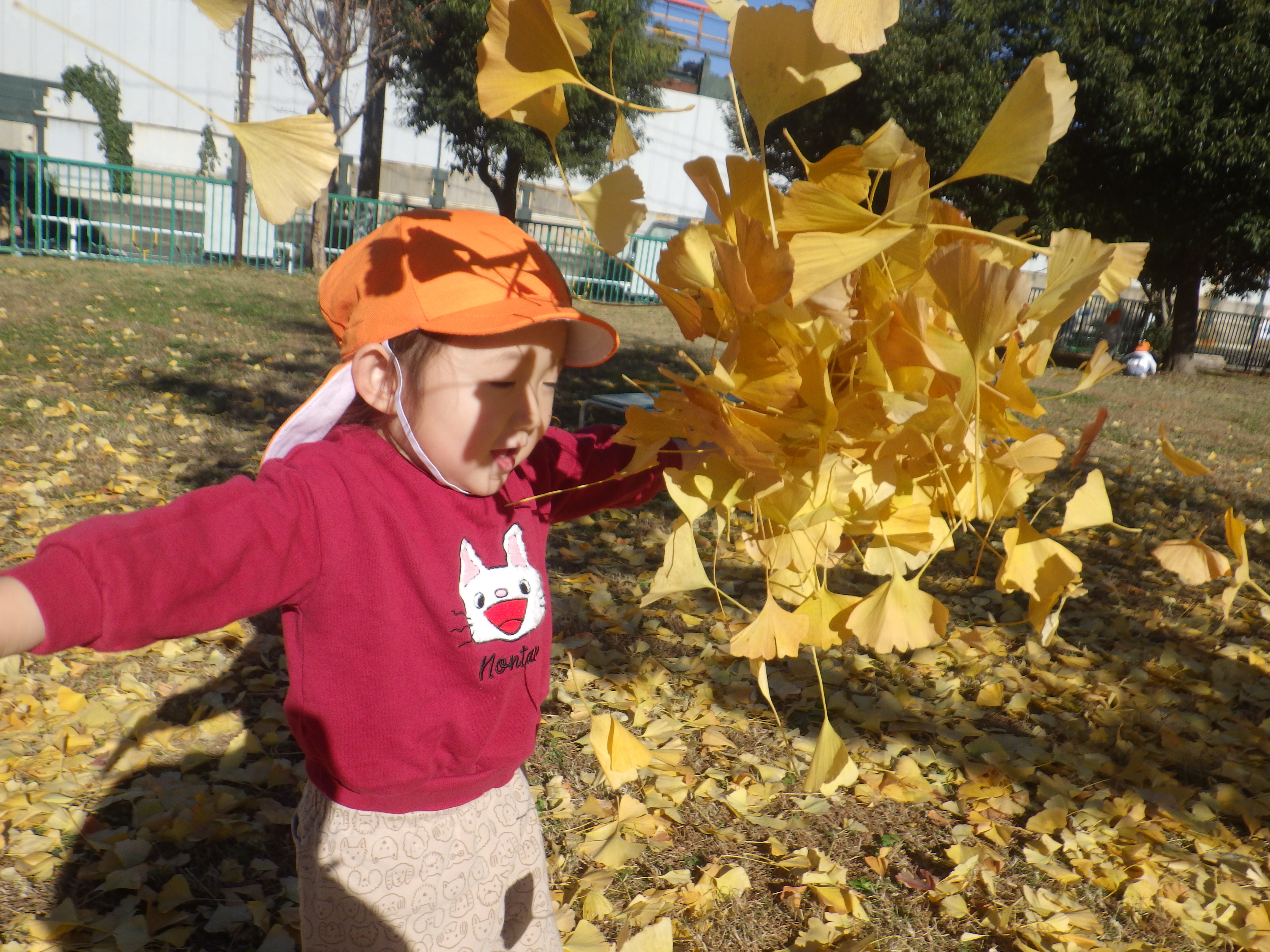 沢山葉っぱをかき集めて「パッ!」と空に投げてみたり