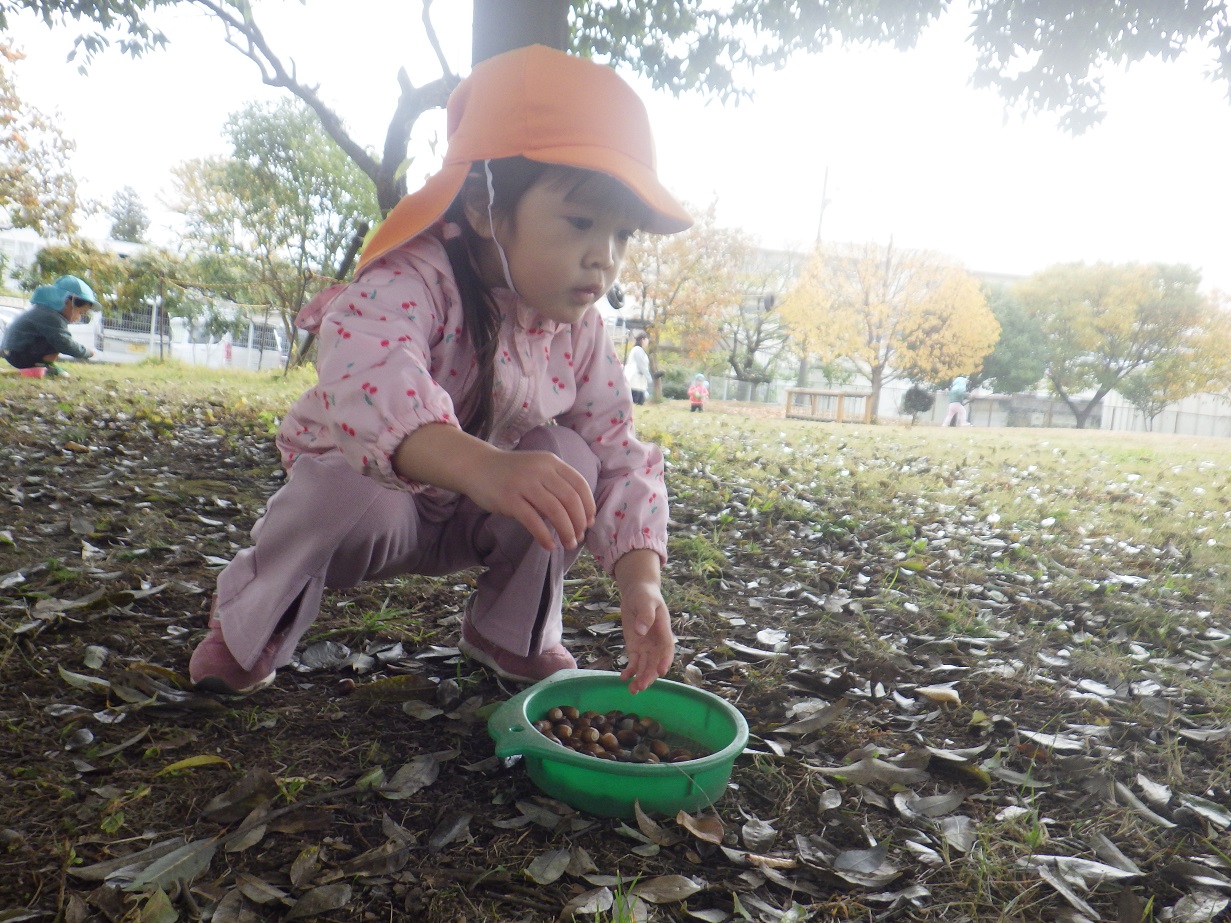 毎日集めても拾いきれないくらいたくさんのドングリに夢中…