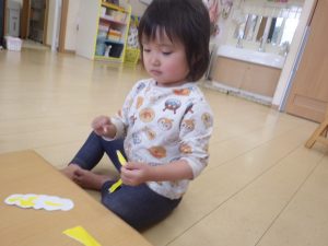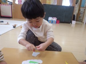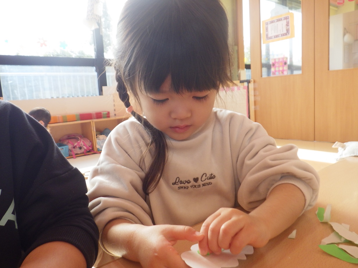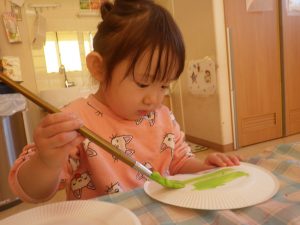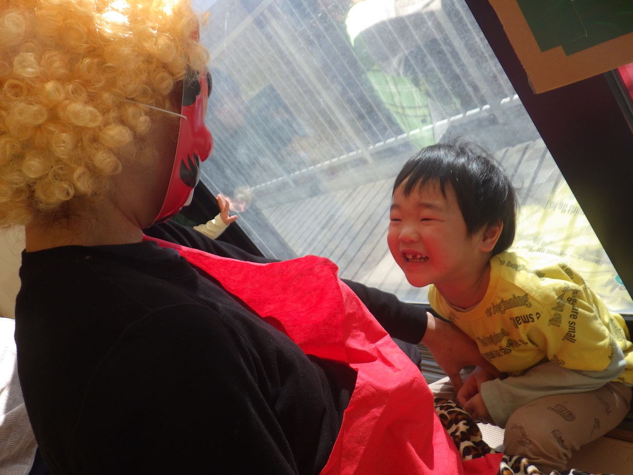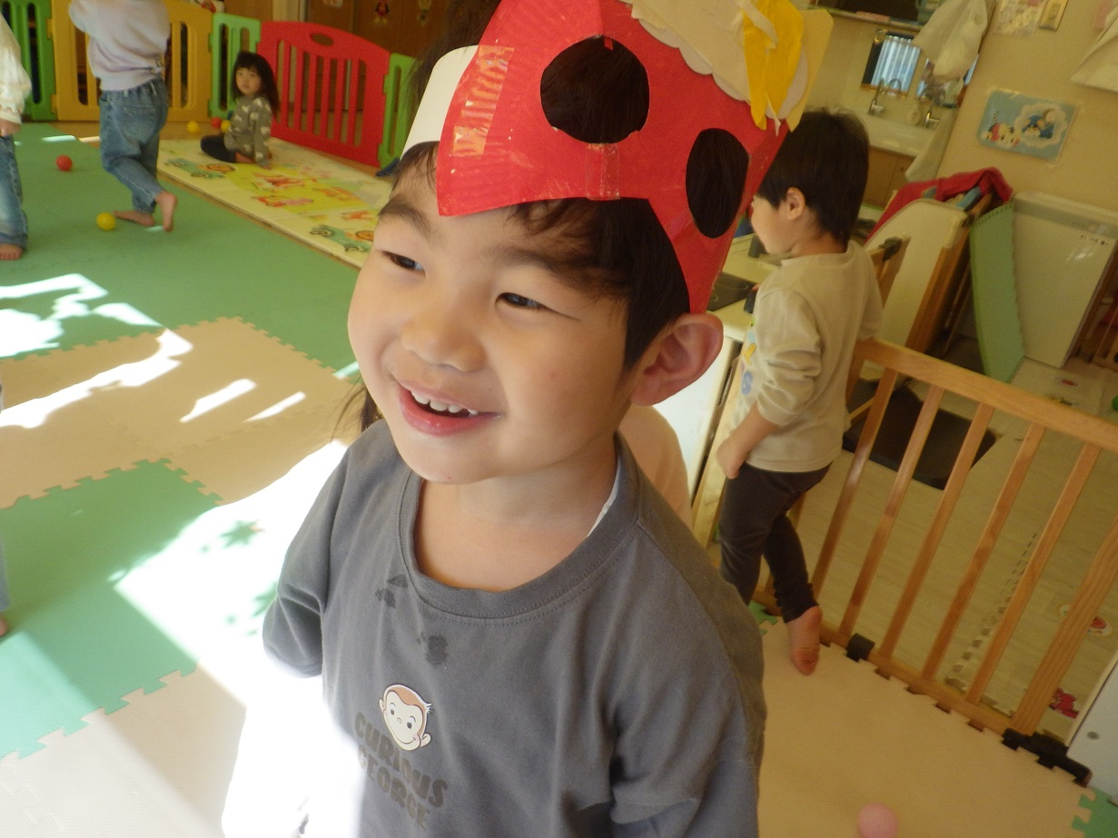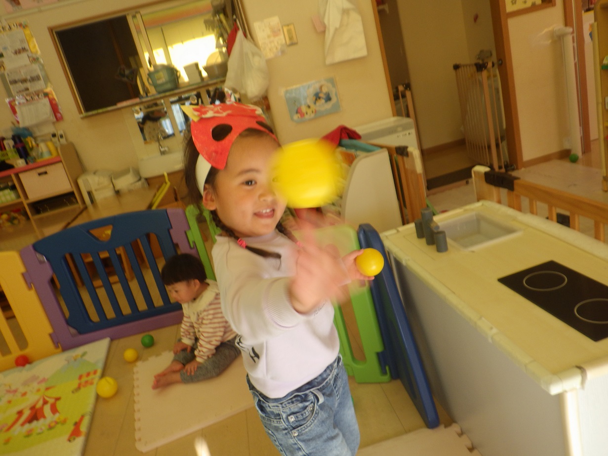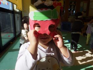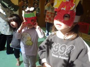 大きな声で「おにはそと~!ふくはうち~!」と言ったり、『豆まき』の歌を大きな声で歌ったりしてるうちに、鬼はこっそり逃げていきました😀