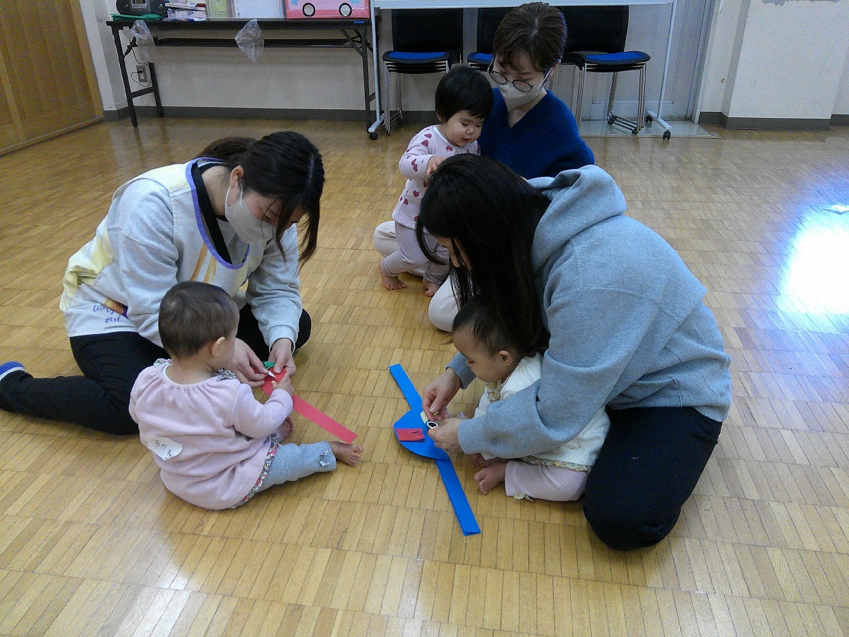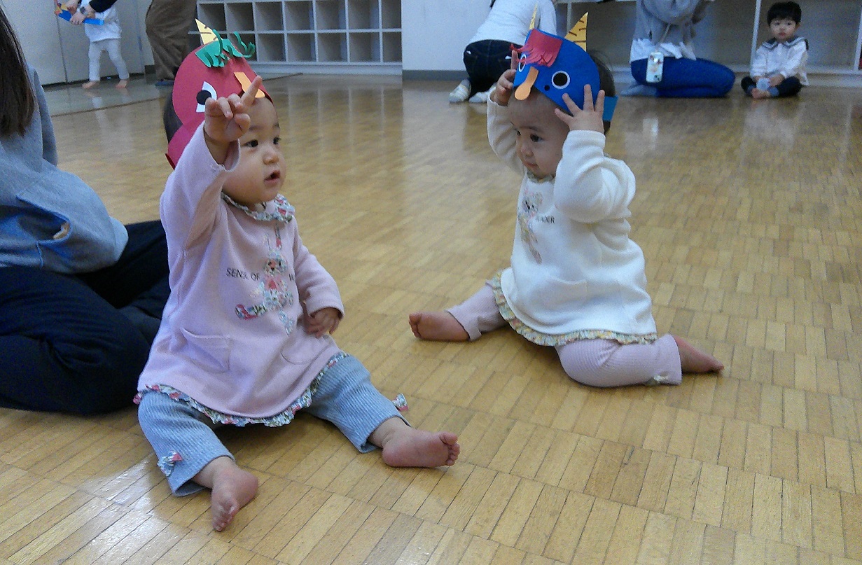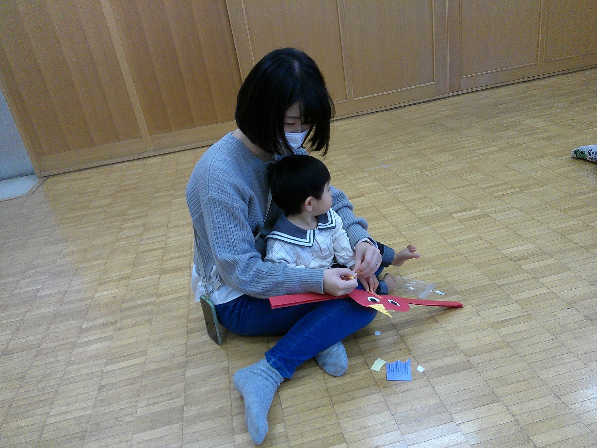 節分に因んだ手遊びをママと一緒にしたり、絵本を見たりしました(^^)